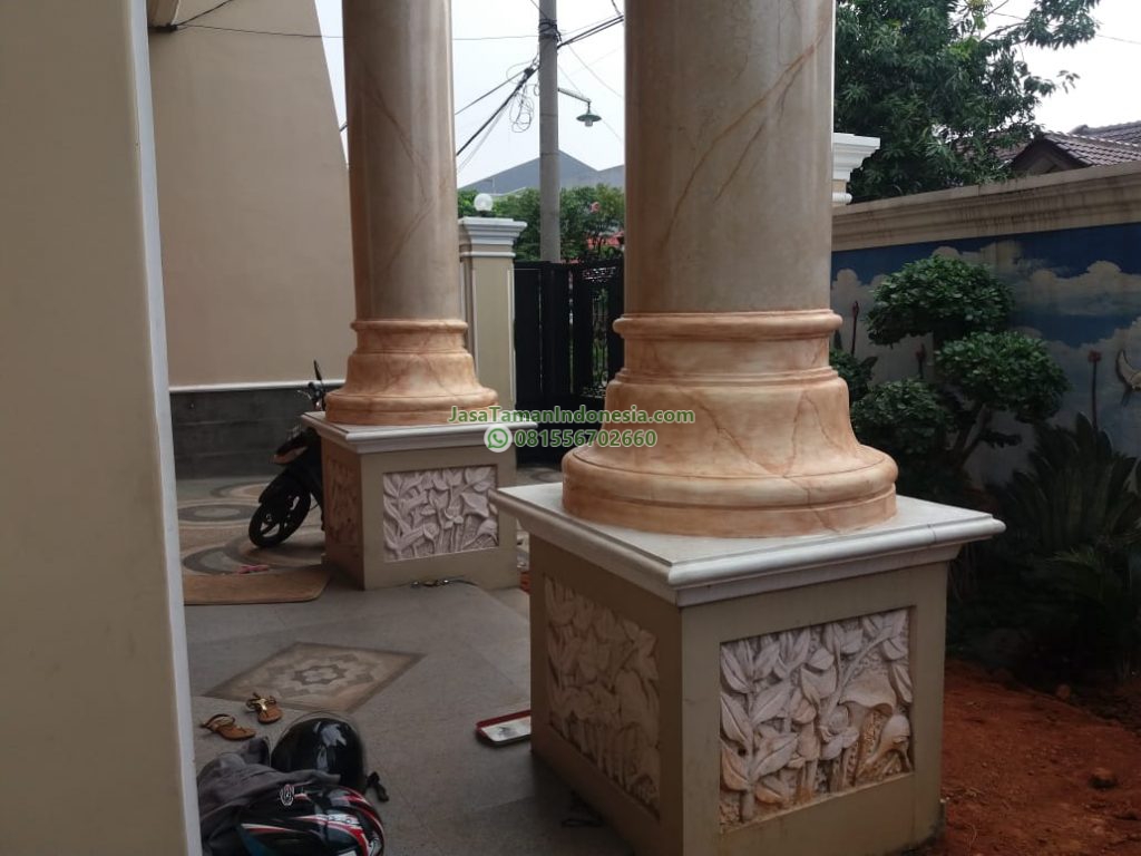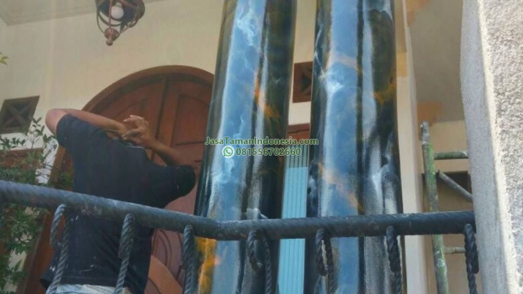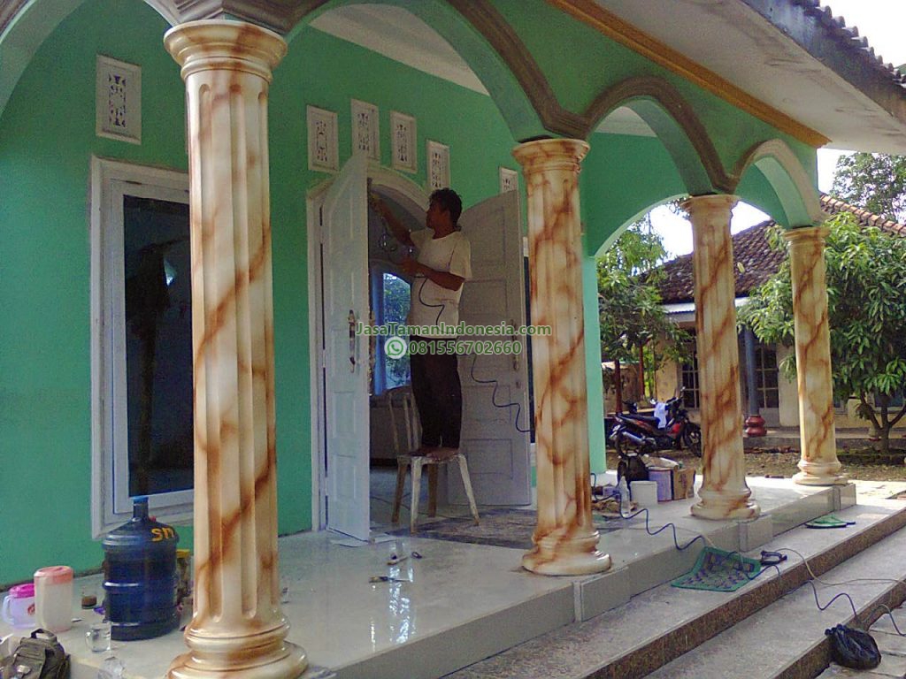 Wash adalah teknik finishing dinding atau kolom yang memberikan efek motif alami menyerupai marmer, batu, atau tekstur klasik dengan tampilan mengkilap dan berlapis. Teknik ini banyak digunakan pada pilar, dinding interior, maupun area fasad untuk menghadirkan kesan mewah, elegan, dan artistik tanpa menggunakan material batu asli.